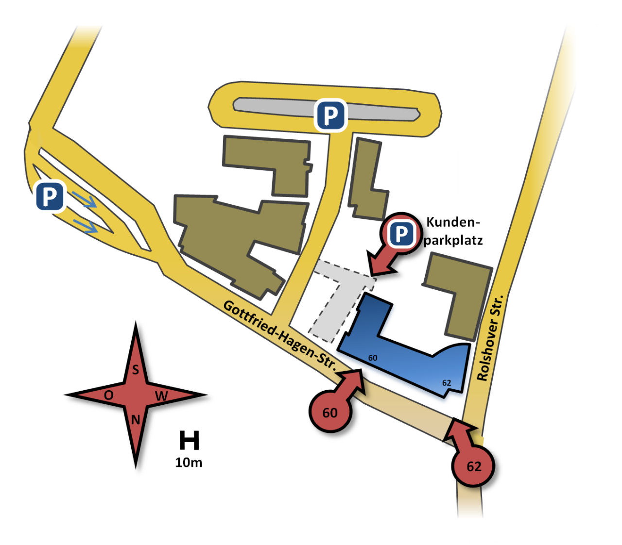 - Ca. 50m weiter erreichen Sie die Kreuzung Rolshover Str./Gottfried-Hagen-Str. und haben Ihr Ziel erreicht.